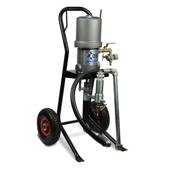 DSTech P301-L303-1S - поршневой безвоздушный окрасочный аппарат, работающий от сжатого воздуха из компрессора. Окрасочный аппарат предназначен для промышленного применения на заводах по производству металлических конструкций, вагонных заводах, оконных и дверных фабриках, на производствах, где требуется массовая покраска однотипных изделий одной и той же краской. Окрасочный аппарат может работать круглосуточно, он охлаждается от краски. Аппарат может распылять безвоздушным способом краски на водной основе и краски на растворителях. С жидкими красками он может работать на два маляра одновременно.